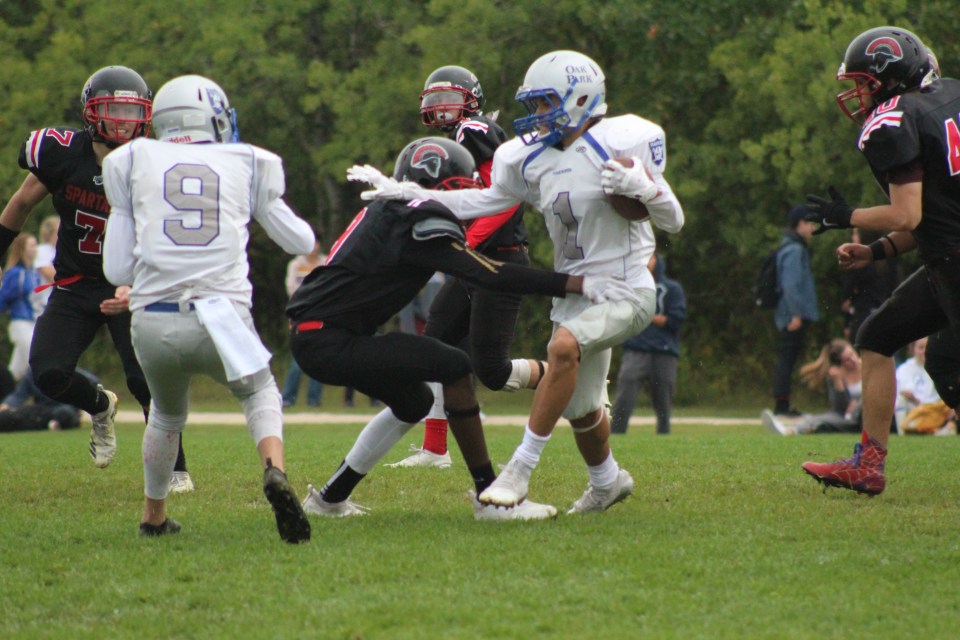 By: Mike Still Feature photo: Oak Park running back Rhyland Kelly makes a move against Sisler in the WHSFL Division...