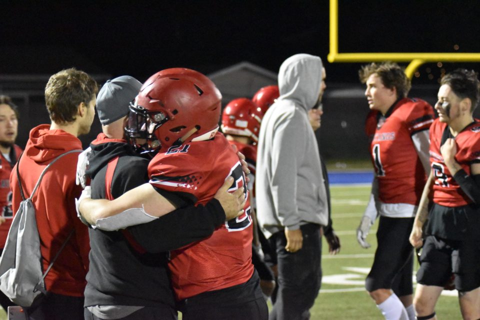 By: Mike Still (@mikestill94) Feature photo: Rifles linebacker Barret Mueller records an interception in the second half against the Auggies....